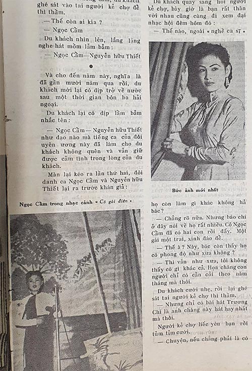 Bài phỏng vấn này đưa ra thông tin về đôi danh ca Ngọc Cẩm và Nguyễn Hữu Thiết từ năm 1955. Cả hai đã lập gia đình năm 1948 và mới đến Sài Gòn hơn một tháng trước khi bài phỏng vấn được đăng. Vợ chồng danh ca này đã gặp nhiều khó khăn và tranh đấu nhiều khi làm nghệ thuật ở Sài Gòn. Tuy nhiên, họ nhận thấy thính giả ở Sài Gòn rất mến mộ và hoan nghinh họ trong những buổi trình diễn ở các rạp nhạc. Cả hai cũng có ý định tham gia làng kịch ảnh và đóng phim trong tương lai.