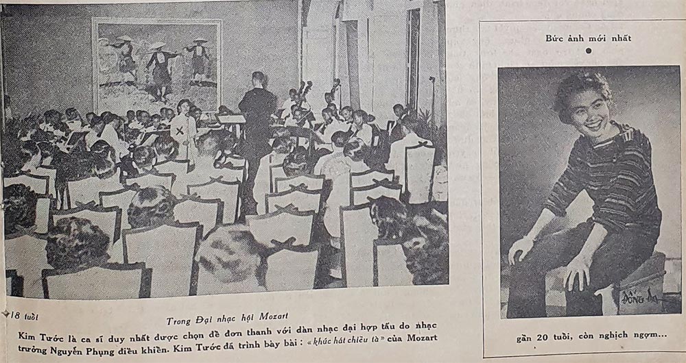 Bài báo này trích từ năm 1957 và phỏng vấn Kim Tước, một danh ca nổi tiếng khi mới 19 tuổi. Nhân vật chia sẻ về quá trình học hát và những bước nâng cao khả năng biểu diễn của mình. Là một tín đồ của âm nhạc, Kim Tước tiết lộ niềm đam mê và cảm xúc trong việc truyền tải thông điệp qua các bài hát của mình. Bài báo cung cấp cái nhìn về đường cong nghệ của Kim Tước và nhấn mạnh sự trẻ trung và đầy tiềm năng của một nghệ sĩ trẻ..